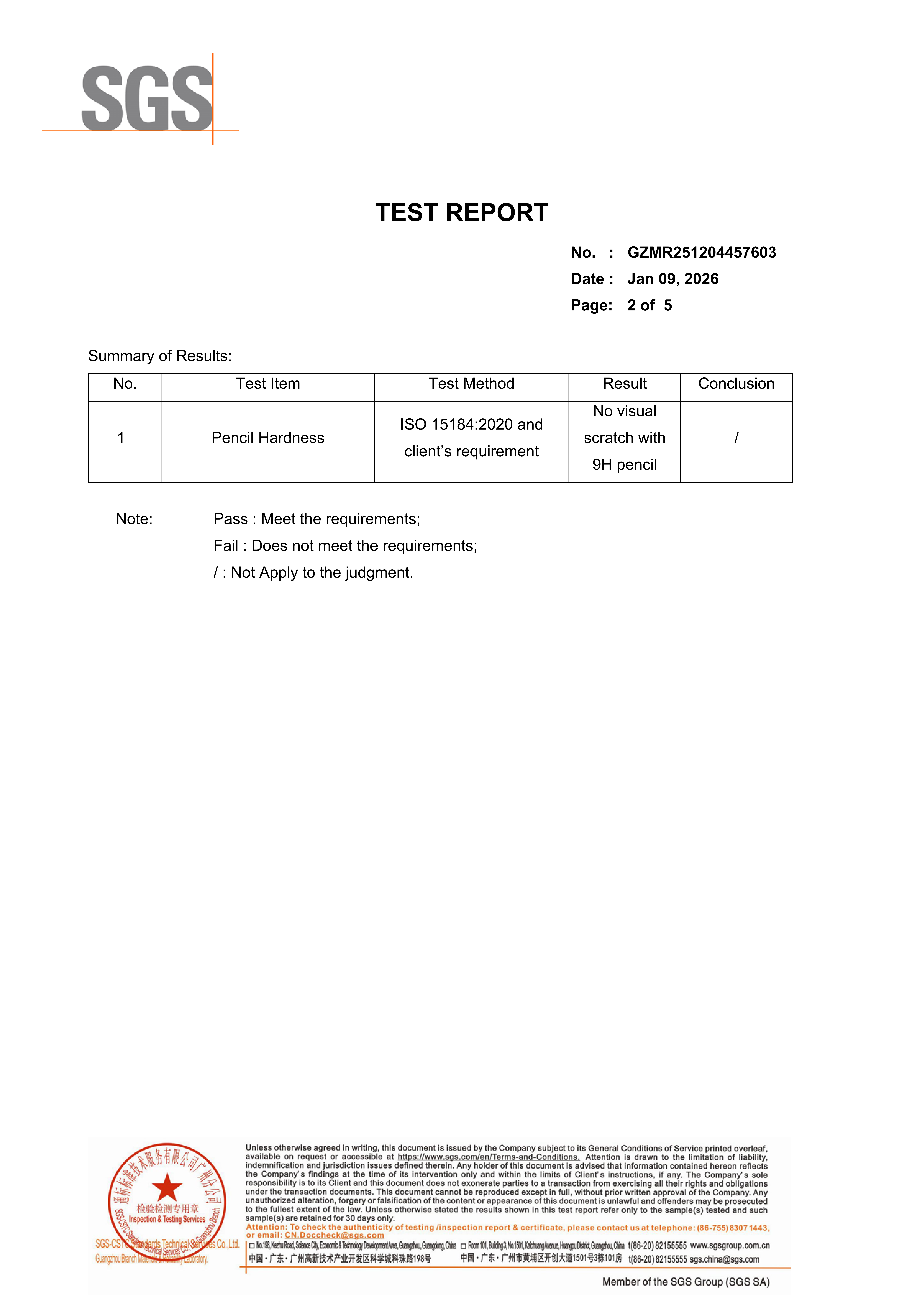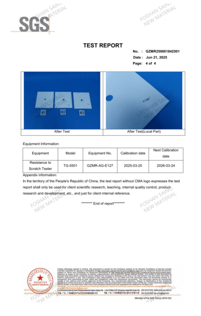 PET Film Scratch Resistance Test- SGS