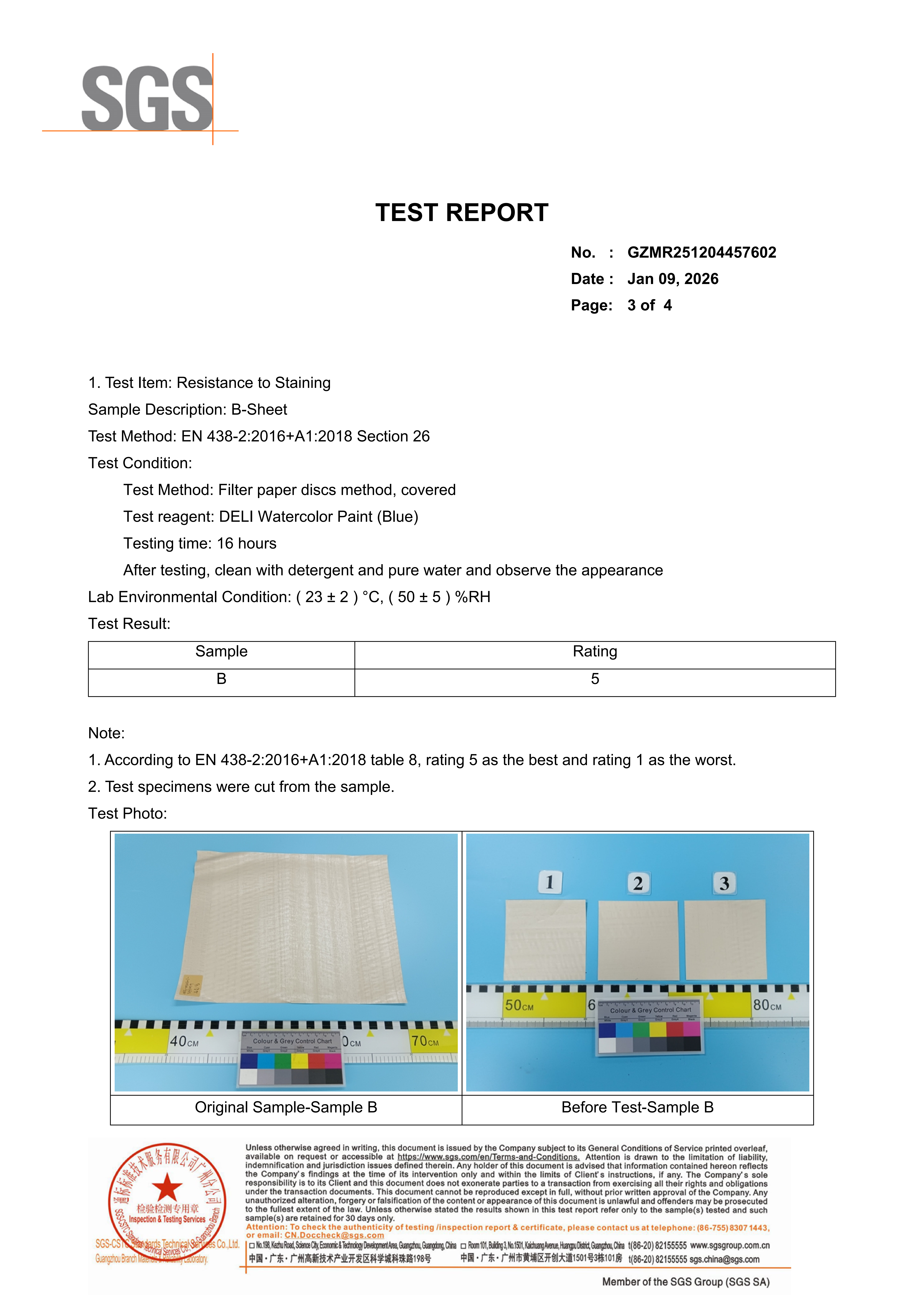 PVC Film Resistance to Staining- SGS