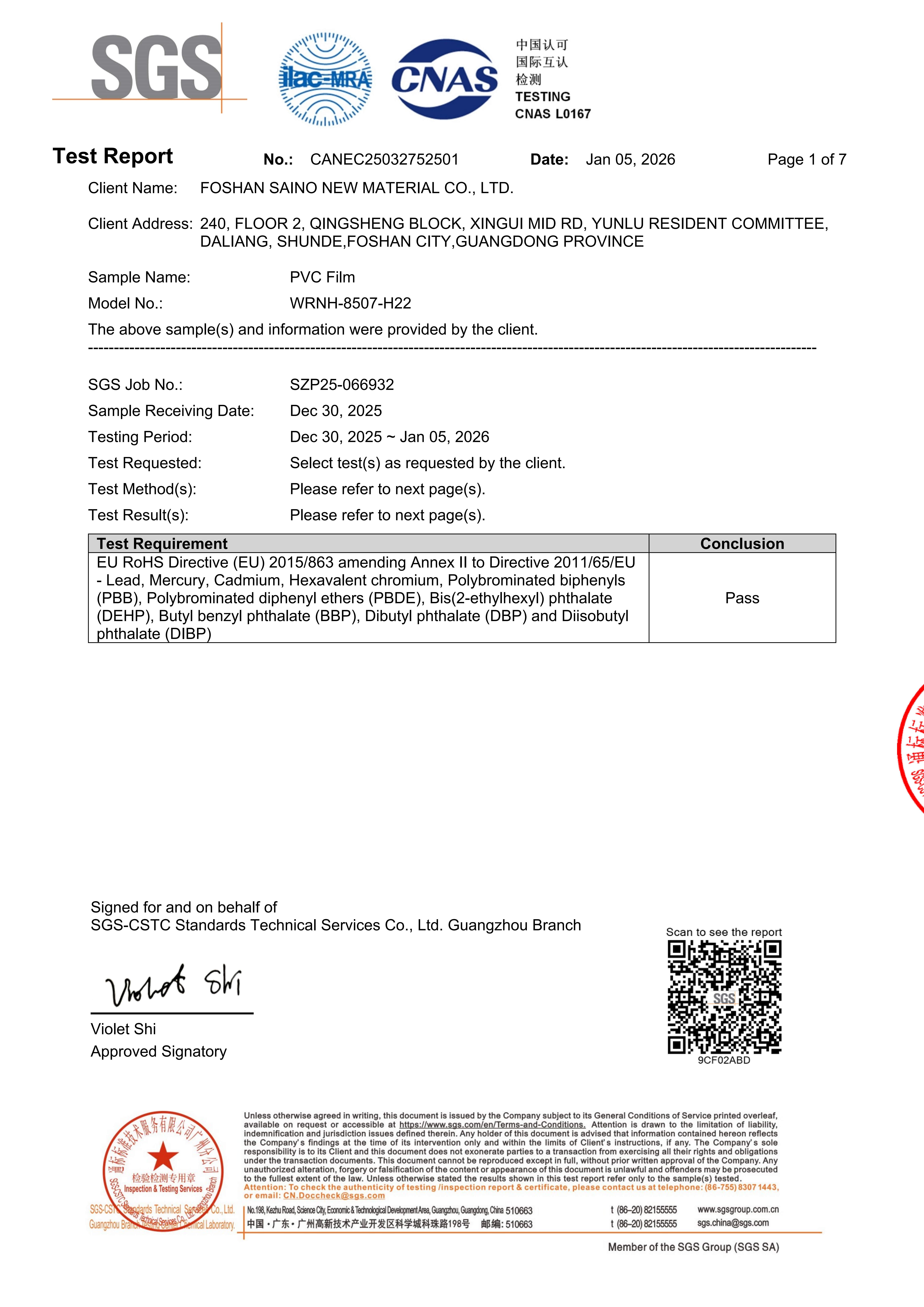 RoHS Certificate- SGS